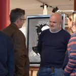 Herr Kruse, seines Zeichens Kreativdirektor, breitet seine unzählbaren Portraitzeichnungen in der Galerie aus.
