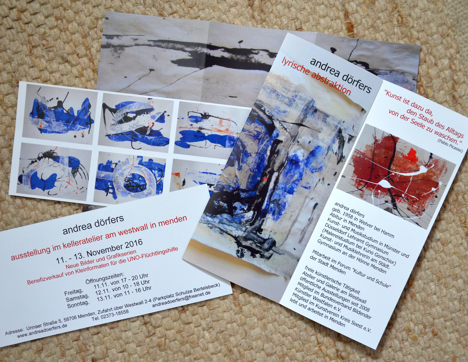 Ihr Engagement für die Flüchtlingshilfe ist längst kein Geheimnis mehr und so steht auch in dieser Ausstellung der Benefizverkauf von Kleinformaten (moderne Druckgrafiken im Format 30 x 40 cm) zugunsten der UNO-Flüchtlingshilfe im Mittelpunkt.