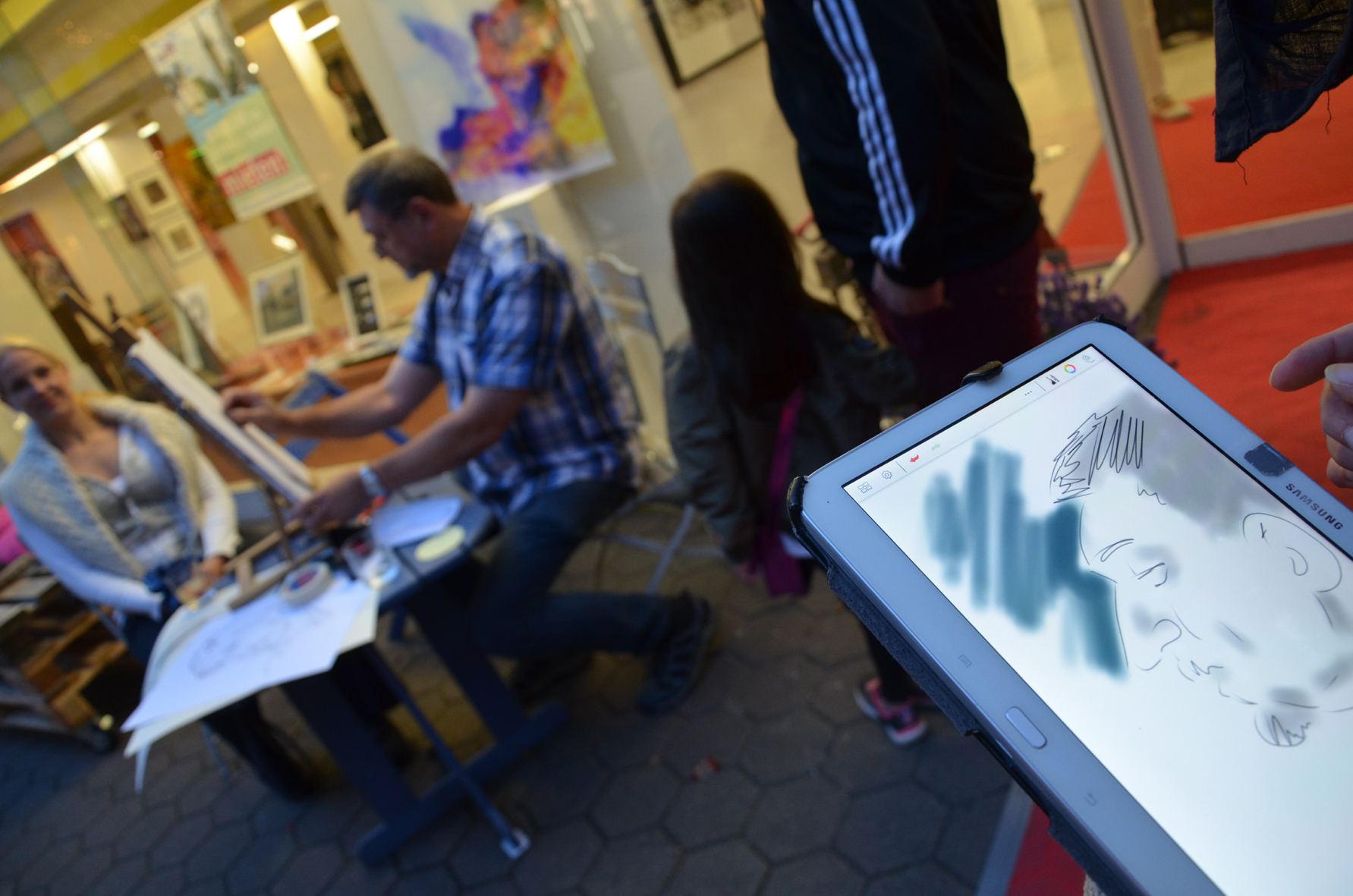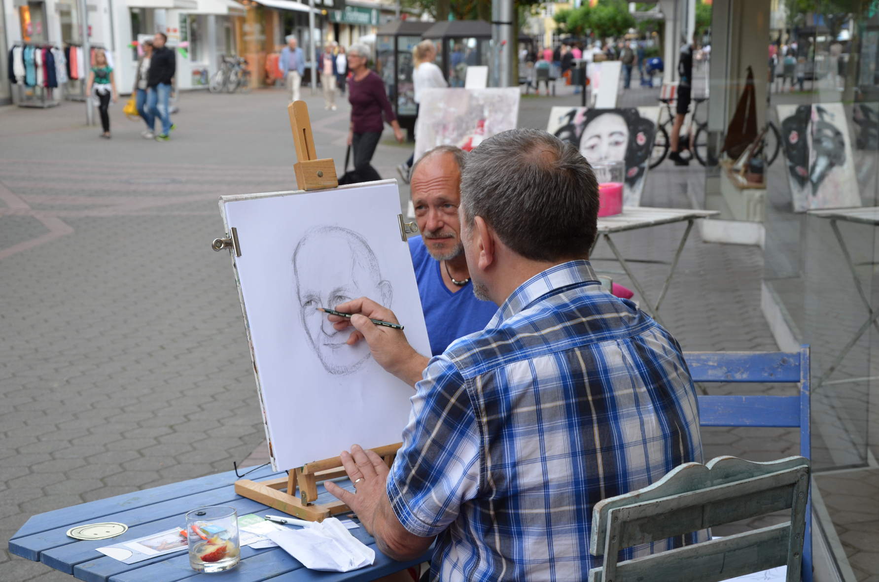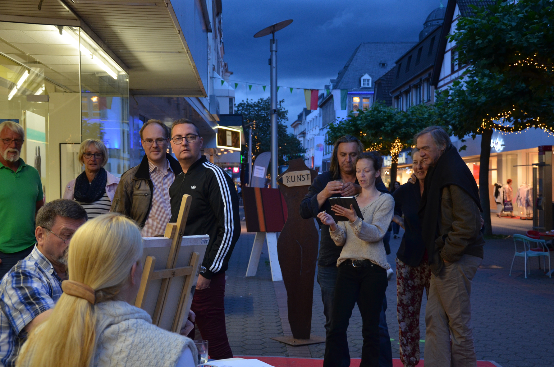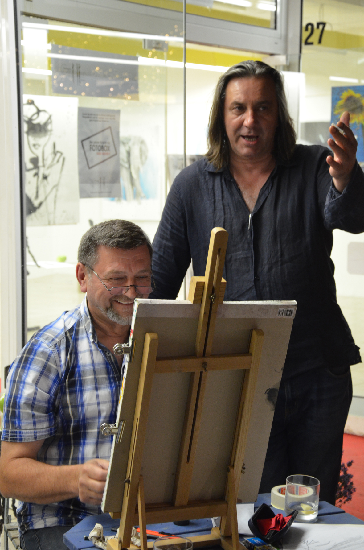Unser einjähriges Bestehen im ehemaligen IHR PLATZ wurde an und durch diesen Abend gebührend gefeiert. Die Galerie präsentiert sich in neuem Ambiente und zog die ganze Nacht hindurch viele Besucher an. Neben der gut angenommenen FOTOBOXaktion (jeder Besucher konnte sich vor dem Werk seiner Wahl fotografieren lassen und bekommt dieses Bild nun freihaus per Mail geliefert) hat Alexander Wotschel mit seinen Portraitzeichnungen für Aufsehen gesorgt. Ein weiteres Dankeschön für einen wunderbaren Abend in Menden!