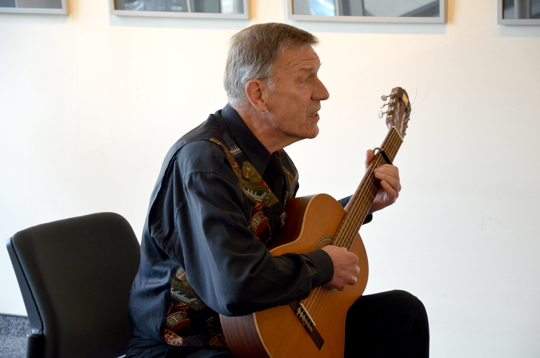 Werner Innig gab bekanntes russisches Liedgut, deutsch übersetzt, mit Gitarrenbegleitung zum Besten.