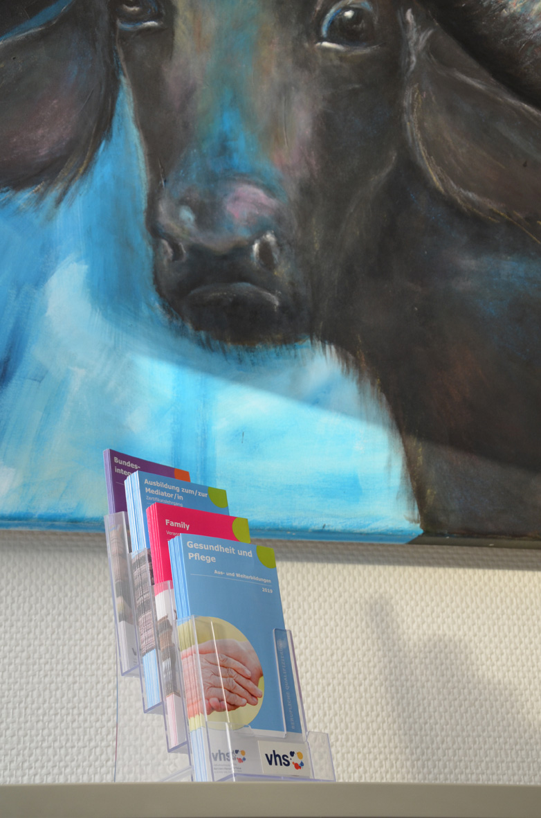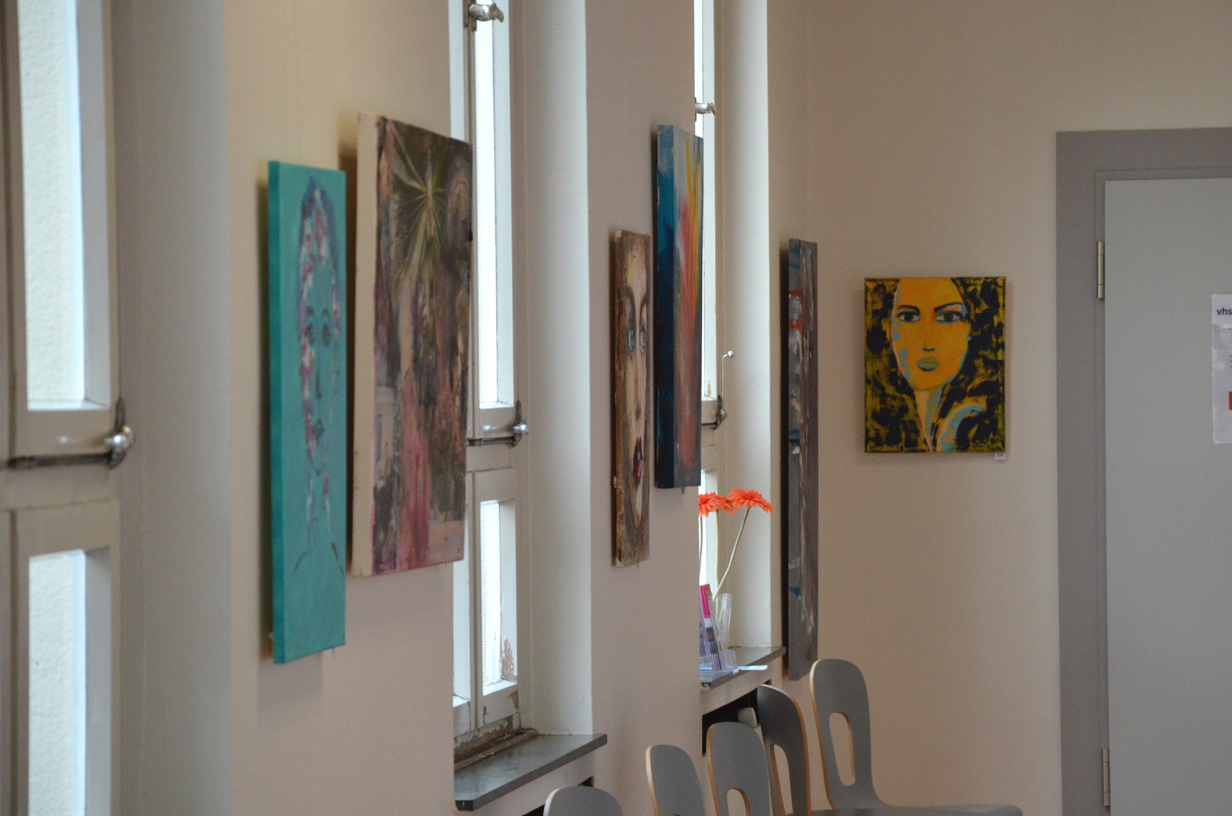 Seit dem 10. Februar hängen vielfältigste Werke der „Montagsmalerinnen“ von Claudia Mölle in der VHS und können von allen Besuchern während der Öffnungszeiten der VHS in Augenschein genommen werden.