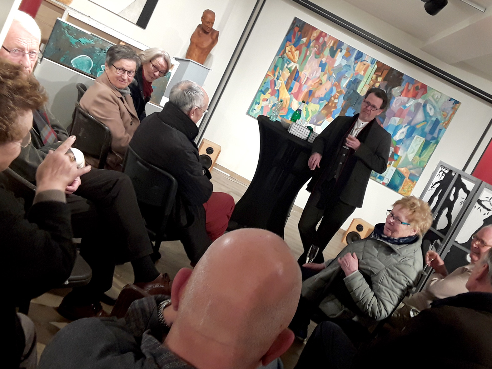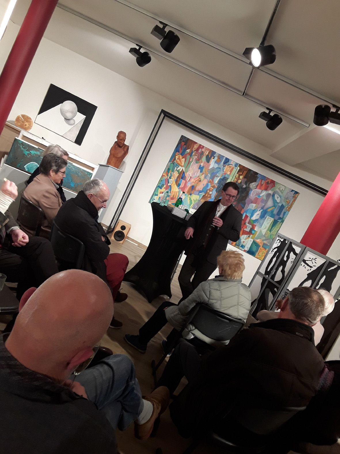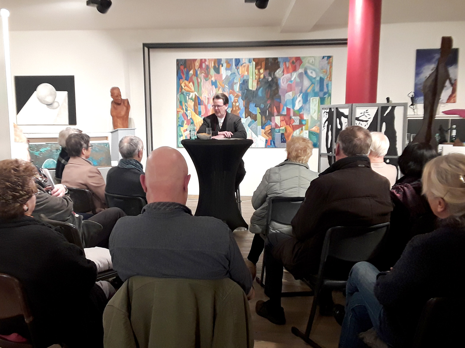 Diese exzellente Erzählung, die Joris-Karl Huysmans, der selbst 40 Jahre als Beamter tätig war, 1888 geschrieben hat, wurde brillant von Volker Fleige vorgetragen und begeisterte die Zuhörer in der Galerie FreiraumGestalten. Mitleid und Schmunzeln wechselten sich ab. Letztendlich wird die Frage aufgeworfen, wie die Umwelt den Menschen formt, was mit dem Selbstwertgefühl des Menschen wird, dessen Arbeit nicht anerkannt ist.