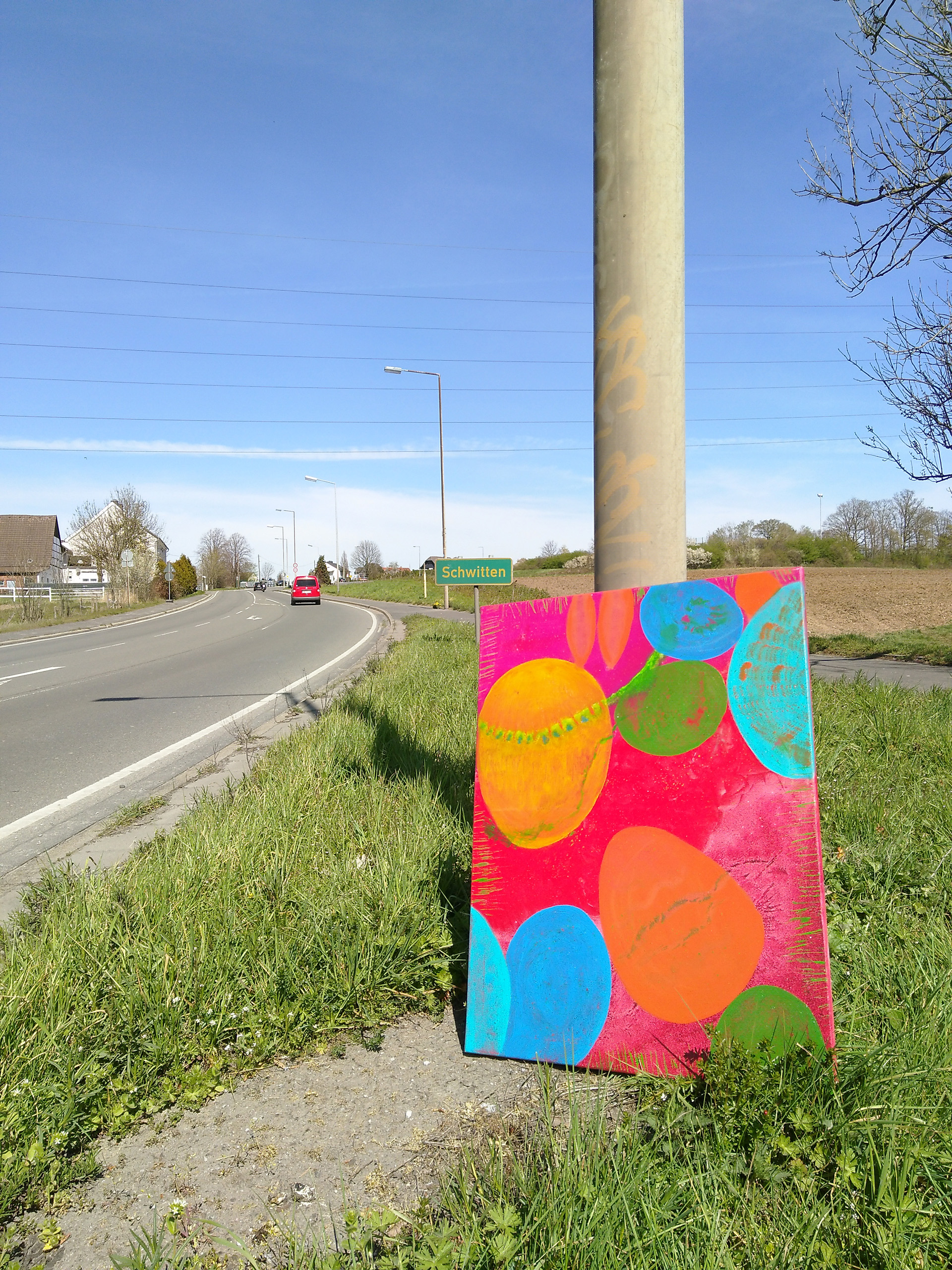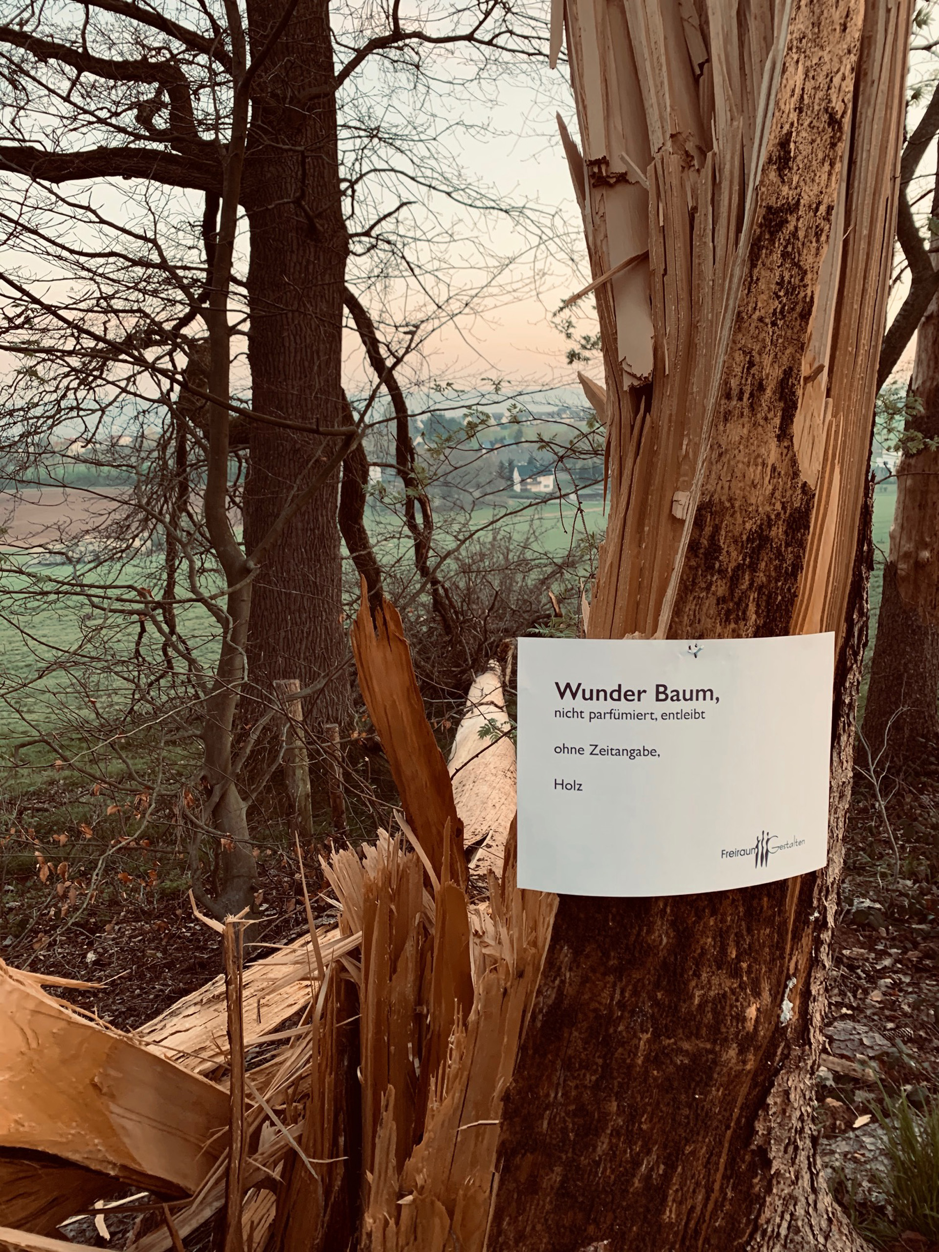 Über die Osterfeiertage haben einige der FreiraumGestalten eine KunstSchnitzelAktion in den Wäldern/ auf den Feldern rings um Menden veranstaltet. Spaziergänger konnten hier und da kleine und grössere Kunstwerke `finden´ und haben sich offensichtlich sehr darüber gefreut, denn auf Facebook haben uns einige ihre Entdeckungen gepostet.